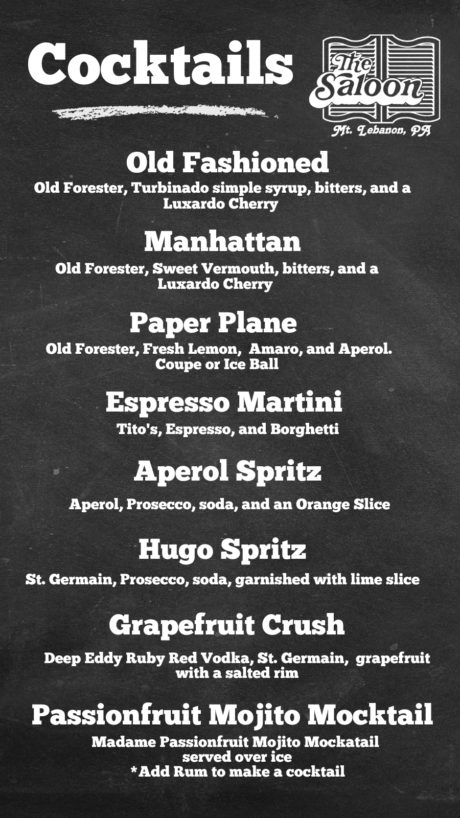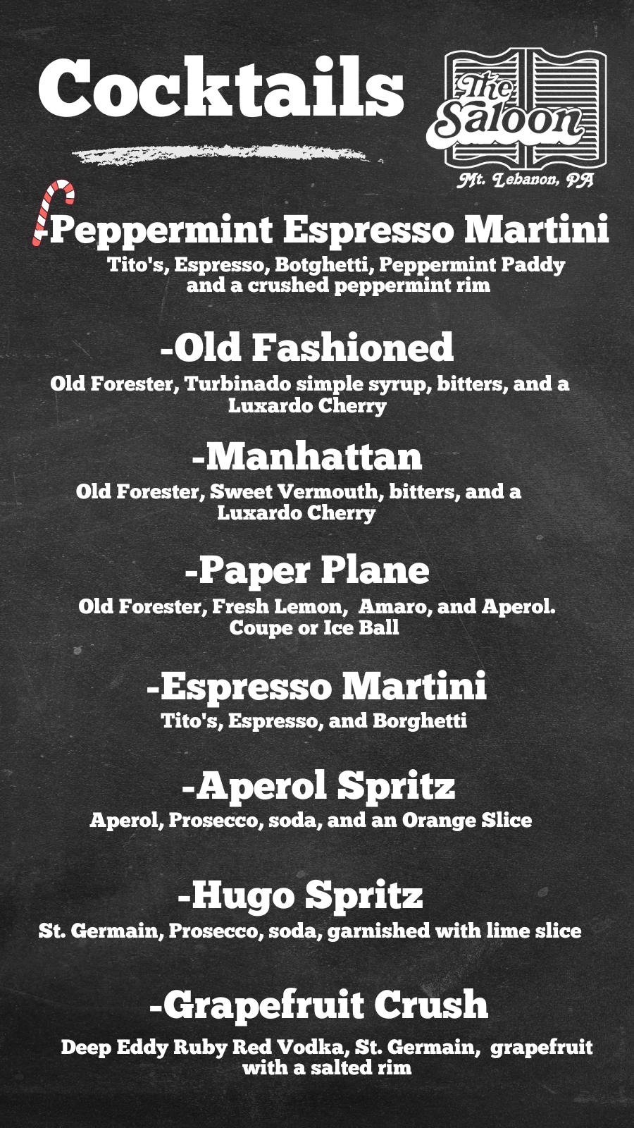 The Saloon of Mt. Lebanon opened its doors on November 1st, 1976 Similar to Cheers, the Saloon quickly grew a reputation for being the place in the South Hills where everybody knows your name. The Saloon has attracted many of the same patrons over the years, while at the same time inviting a new generation who are eager to pull up a bar stool as well. We pride ourselves in maintaining an atmosphere that our loyal customers have come to expect, and our new customers will be excited about.